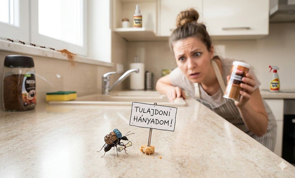 Amint megjön az igazi tavaszi meleg, nálunk szinte menetrendszerűen felbukkan az első hangya a konyhában. Mindig ugyanaz a jelenet: ott sétál teljes nyugalommal a járólapon, mintha minimum tulajdoni hányada lenne a lakásban. Az ember ilyenkor reflexből körbenéz, hogy vajon hol maradt el egy morzsa, ki felejtett kint valamit, és hogy most akkor jöhet-e a jól bevált házi csodafegyver, a fahéj, a bors vagy valami gyors spray.